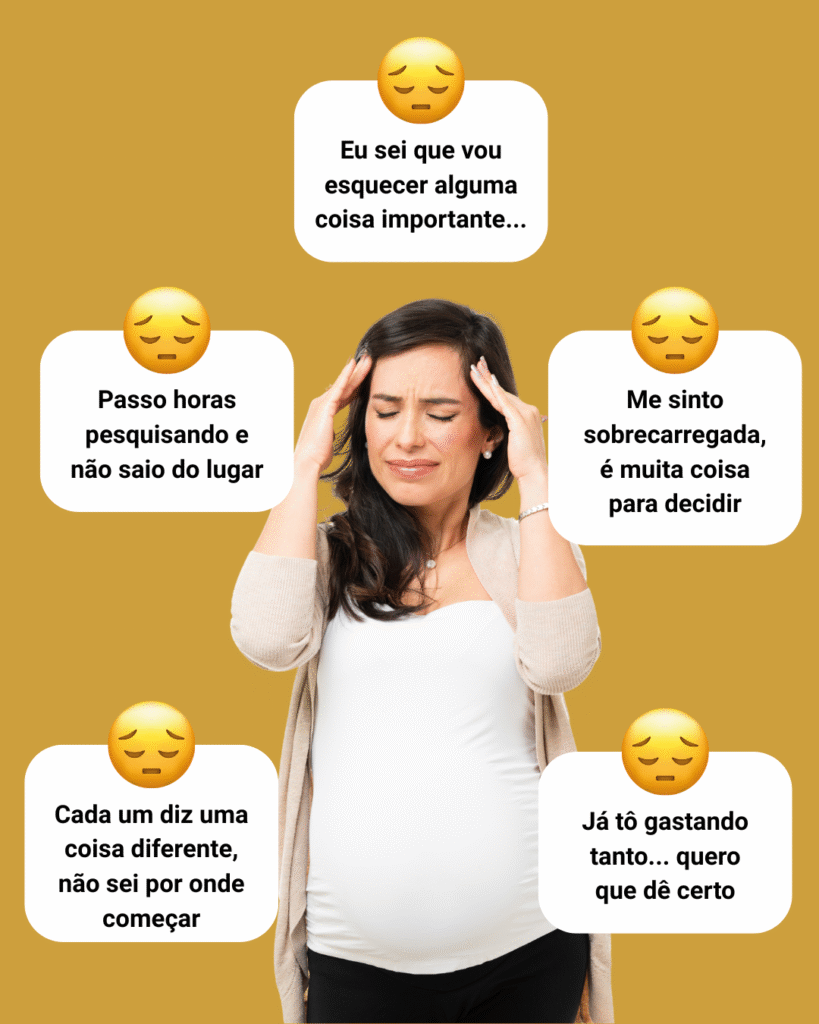 Você começa a montar o enxoval cheia de empolgação, mas termina esgotada e frustrada. Sem uma ordem clara, as compras viram uma maratona confusa. E no final, você não sabe dizer se todo o esforço e gasto realmente valeram a pena.